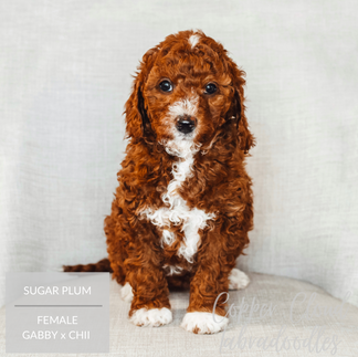 Honeymooned: September 2021 Puppy birth: November 24th, 2021 Puppies ready to go home: January 21st-23rd Expected size: Small Medium (27-30 lbs.) Possible colors: Solid red, red with white mismarks/abstract, red and white parti